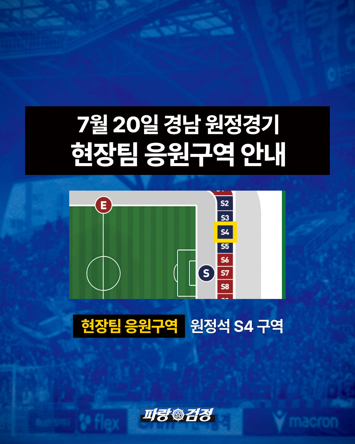 해당 구역을 중심으로 현장팀의 악기, 깃발 등이 설치될 예정이오니 파랑검정 팬 여러분들의 많은 양해 부탁드리겠습니다.