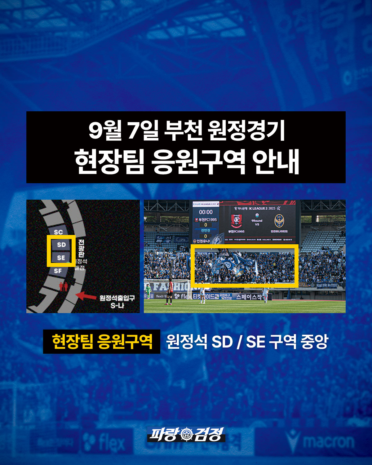 다가오는 9월 7일 부천 원정경기 현장팀 응원구역에 대해 안내해 드립니다.