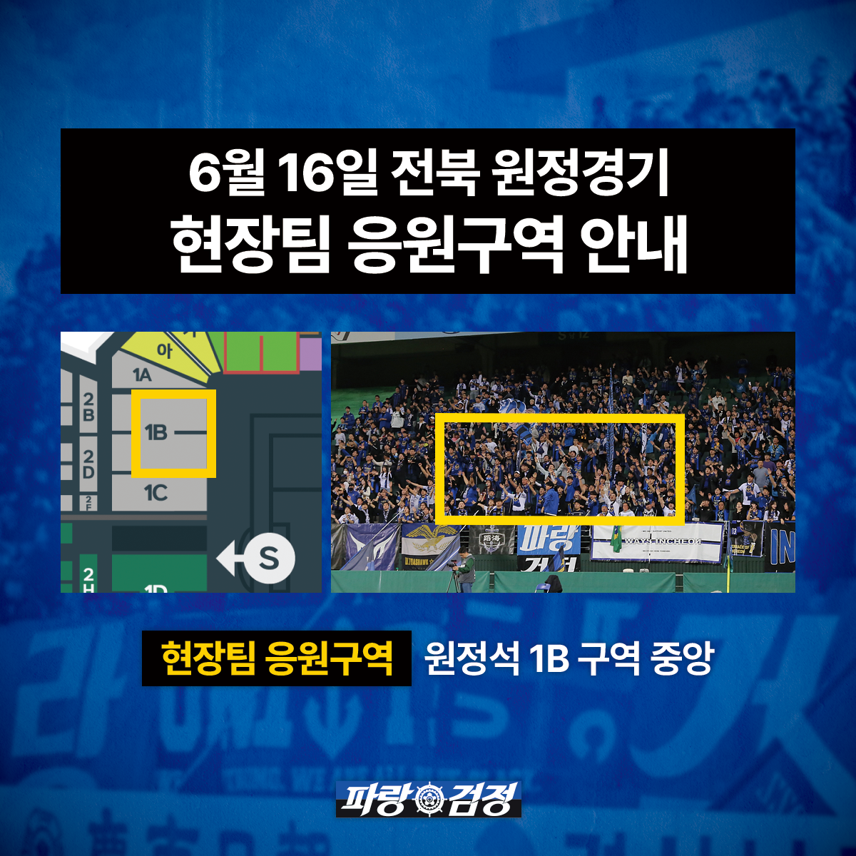 다가오는 6월 16일 전북 원정경기 현장팀 응원구역에 대해 안내해 드립니다.