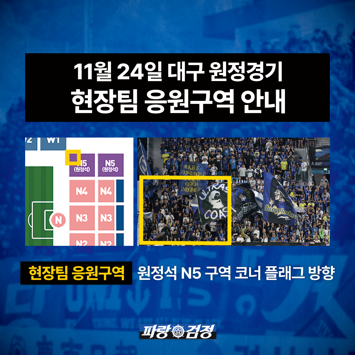 다가오는 11월 24일 대구 원정경기 현장팀 응원구역에 대해 안내해 드립니다.