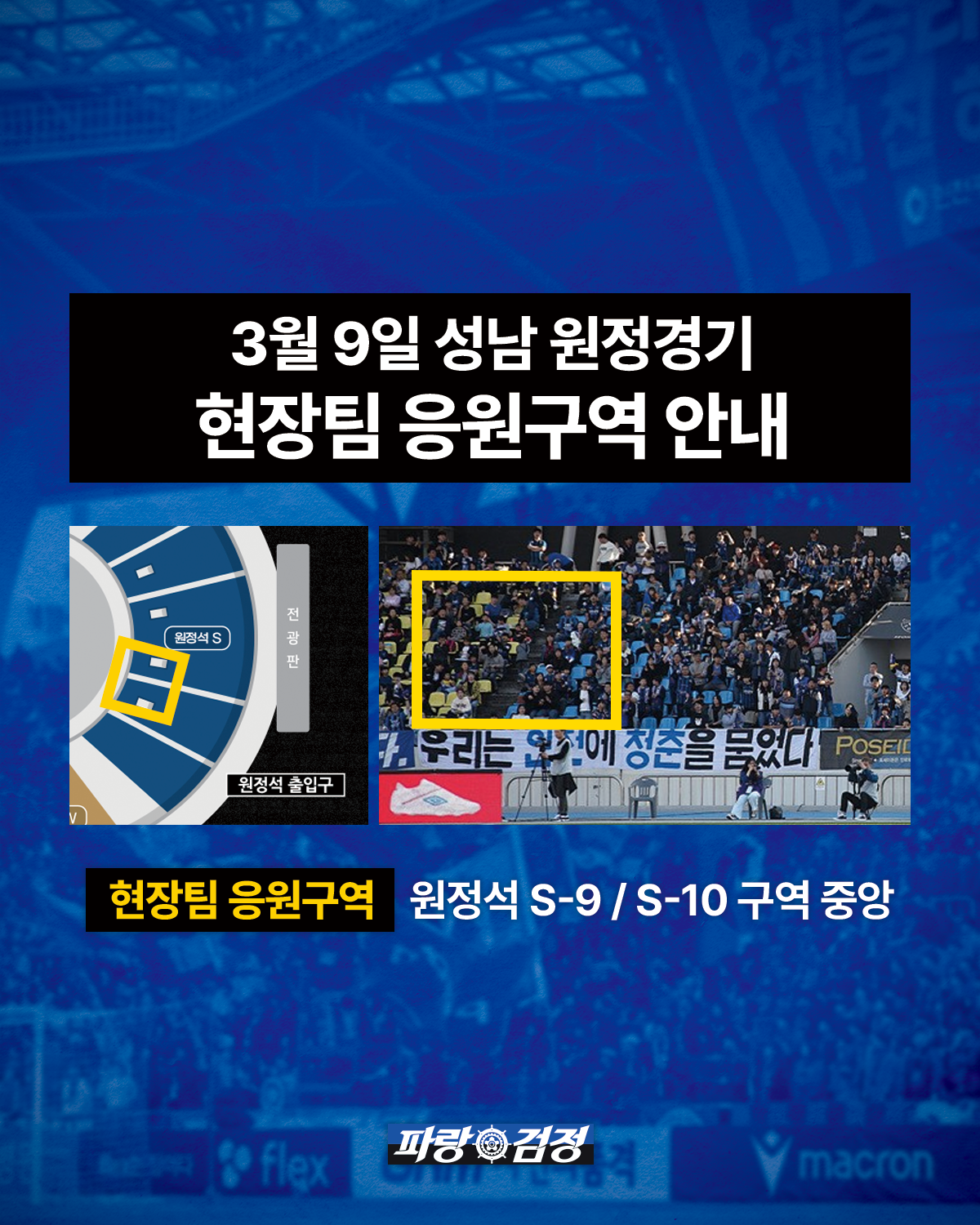 다가오는 3월 9일 성남 원정경기 현장팀 응원구역에 대해 안내해 드립니다.