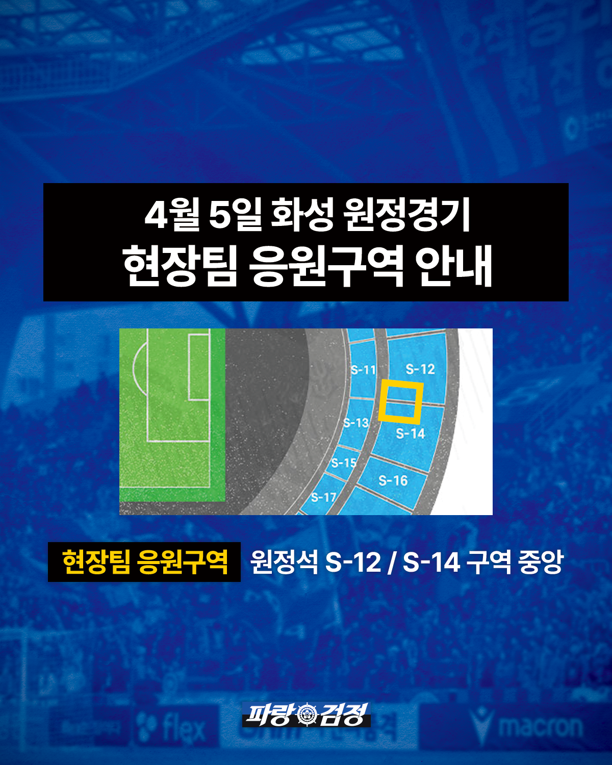 다가오는 4월 5일 화성 원정경기 현장팀 응원구역에 대해 안내해 드립니다.