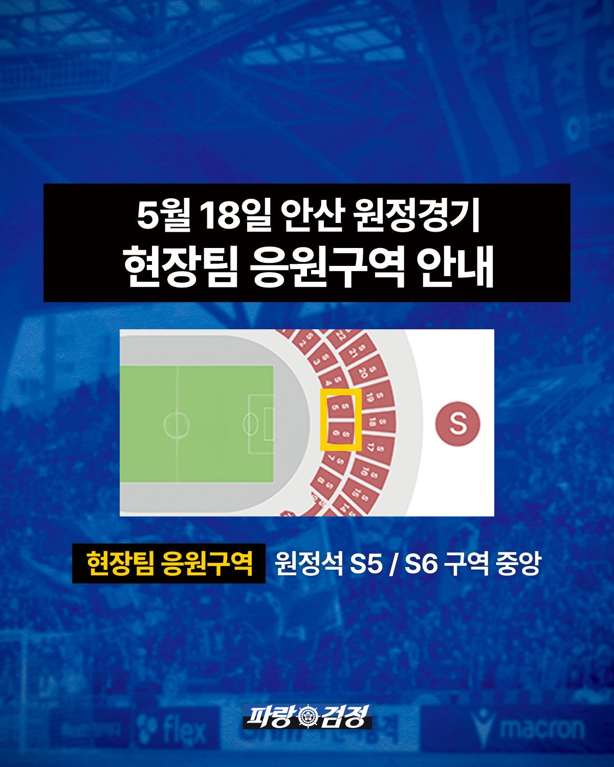 다가오는 5월 18일 안산 원정경기 현장팀 응원구역에 대해 안내해 드립니다.